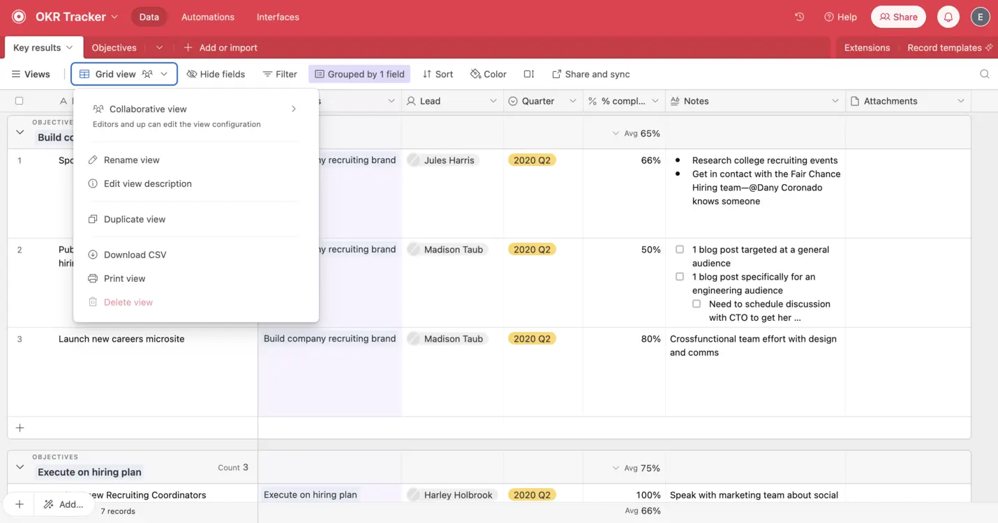 Airtable exports the data as it appears in your current view. Make sure to adjust filters, sort orders, and fields to display the information you need.